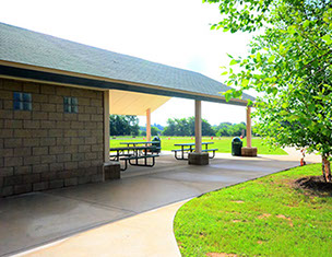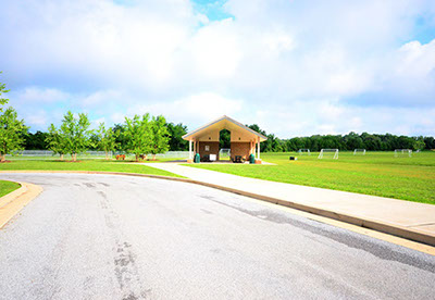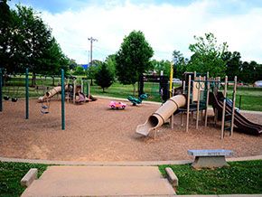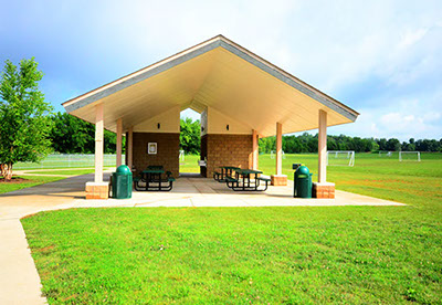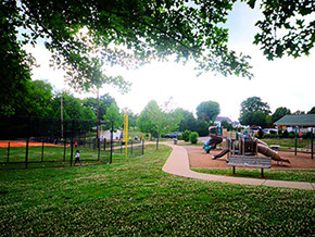 The Park hosts a beautifully manicured baseball/softball diamond, a modern play system equipped with safety features & swings, a pavilion picnic area and public restrooms with a water fountain.
